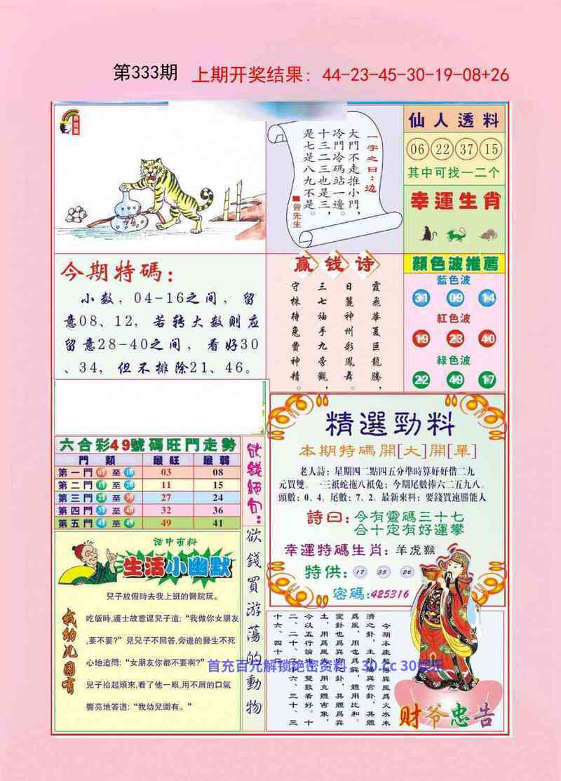 | 334期:🀄天地中特【天肖】开:猴46中 |
