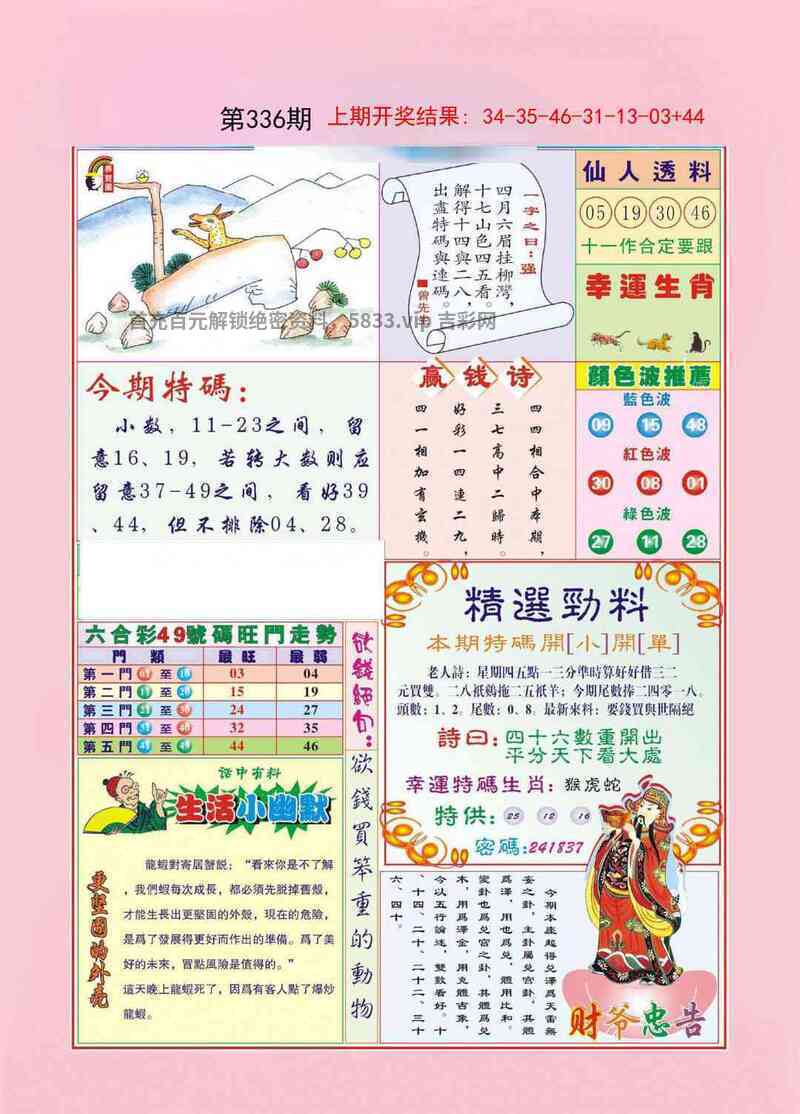 | 334期:吉美凶丑【凶丑】开:猴46中 |